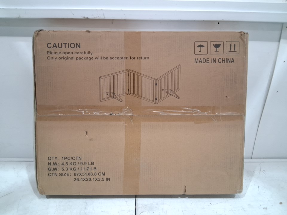 Algherohein Bamboo Freestanding Dog Gate with Metal Support Feet - 24" x 55" - white