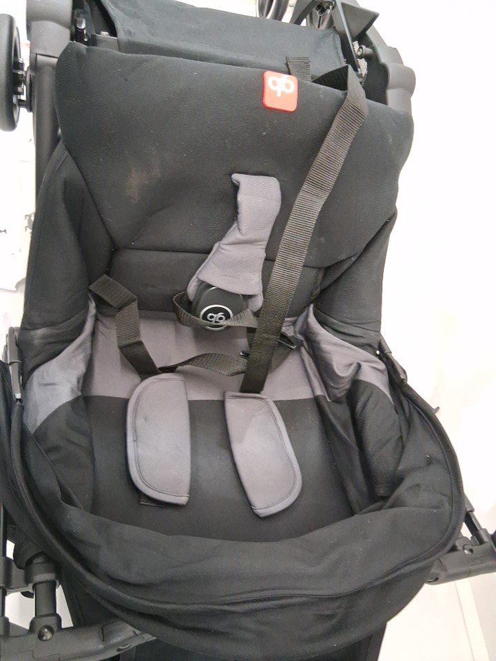 Seat lightly dirty, wheels as well have light dirt and scuffing