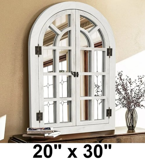 TEWLOSS Arched Wall Mirror with Farmhouse Decor Wood Frame - 20" x 30" - white