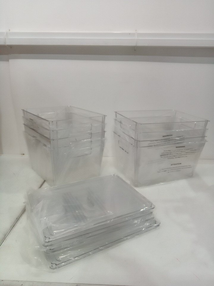 please note that the one bin is completely cracked on the one side and the bottom. see photos.