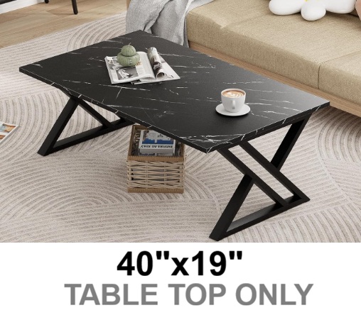 Modern Faux Marble Rectangular Tea Table TOP - 40"X 19" - BLACK MARBLE