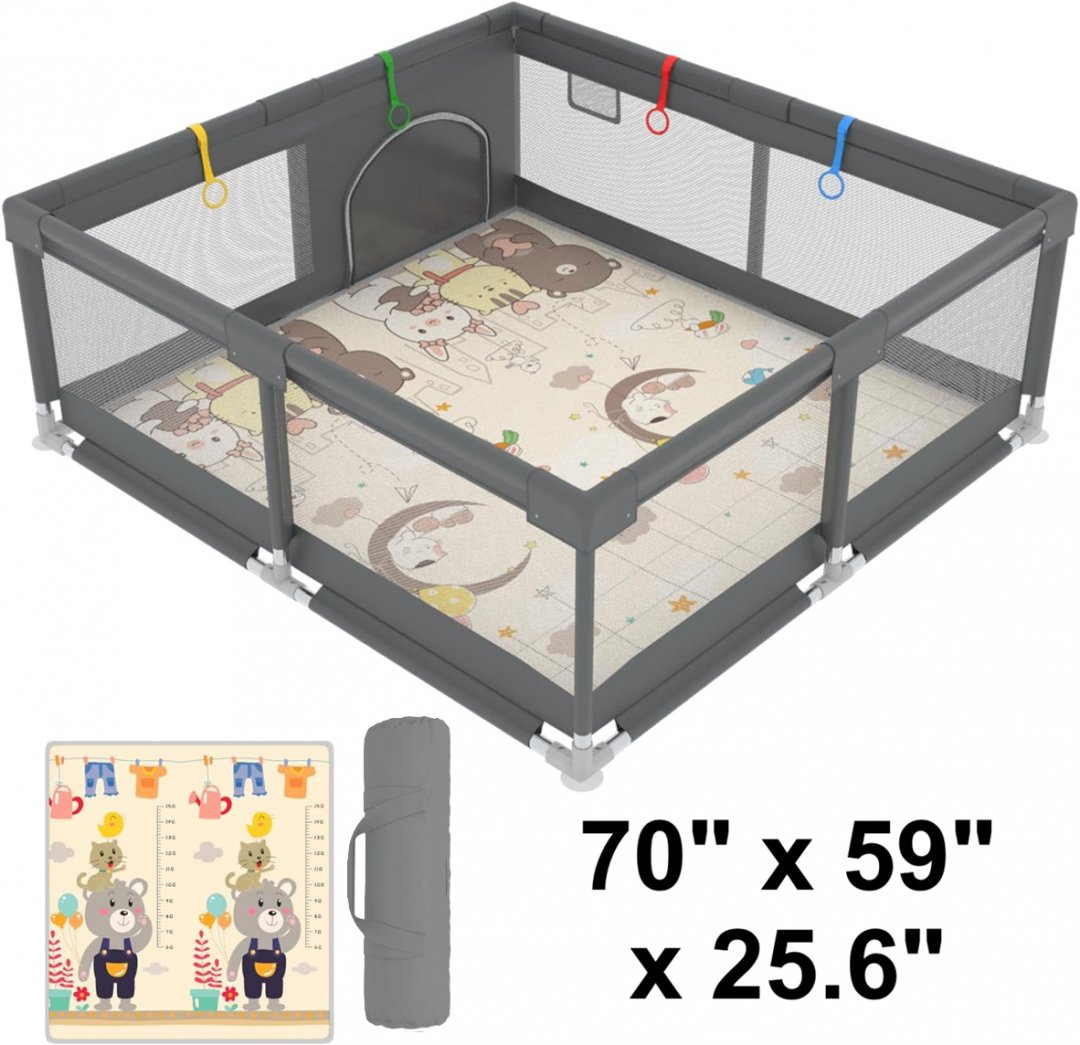 Colpart Baby Safety Infant Playard Playpen With Reversible Mat - 70" x 59" x 25.6" - Grey