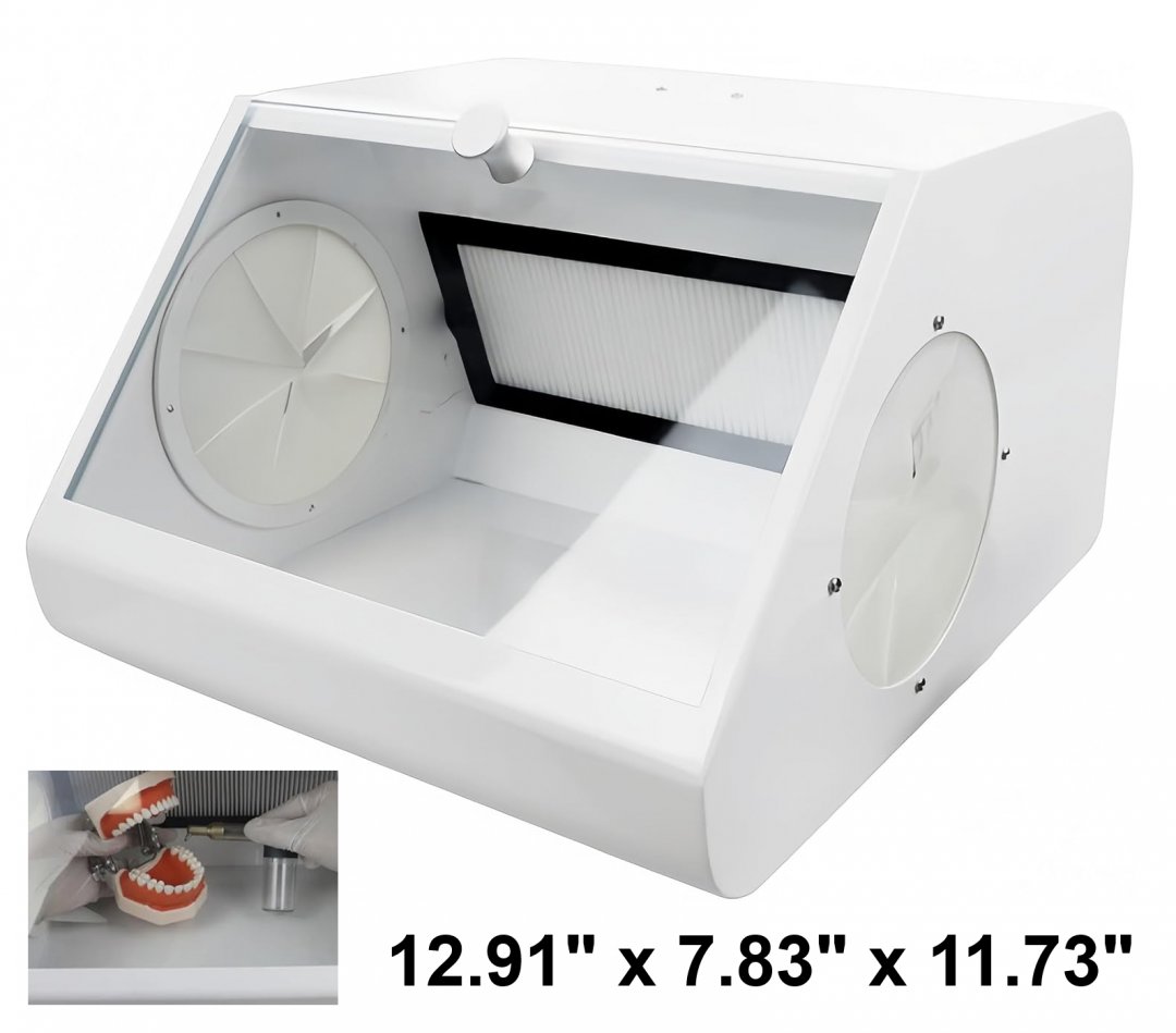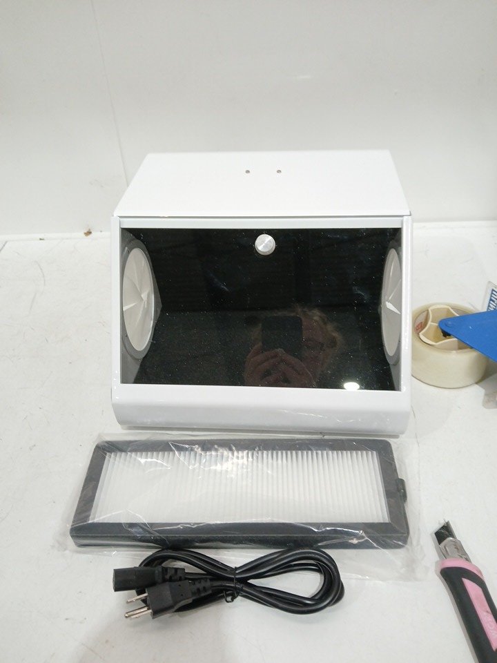 Grinding Sandblaster Polishing Box wiht tempered Glass Baffle, Light, 2 Filters, and Dust Collector Vacuum - white