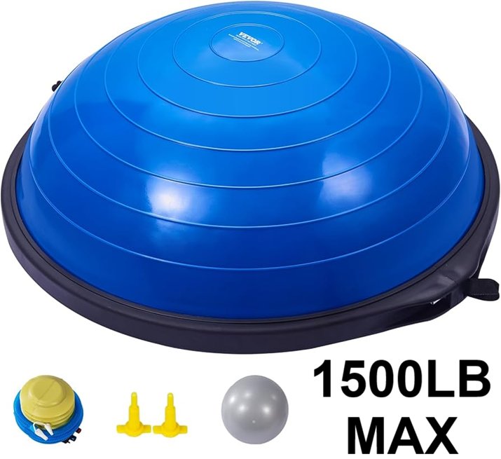 Half Exercise Balance Ball Trainer with Inflatable Yoga Ball and Foot Pump - 26" - 1500lb Maximum Capacity - Blue (Model: AJ-20-2)