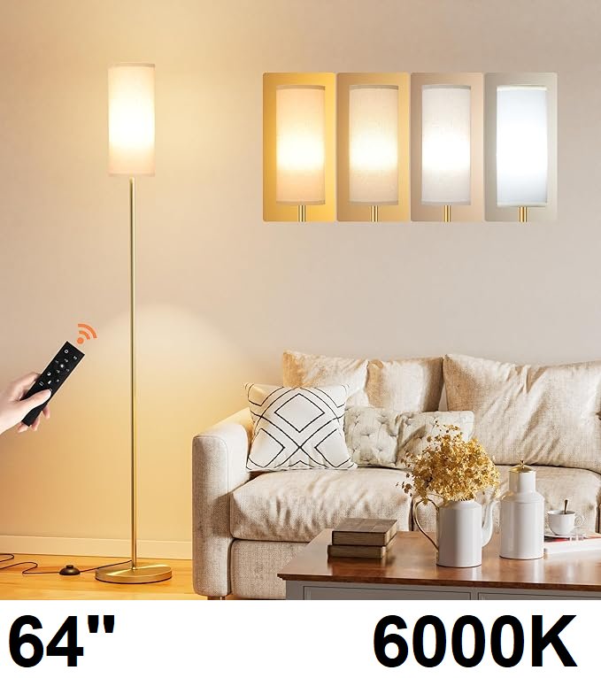 ambimall dimmable floor lamp with remote control - 3000k to 6000k - e27 bulbs - gold (model: bp-f005)
