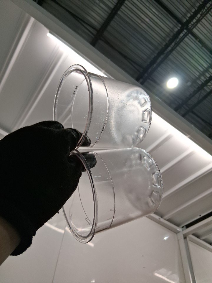 There appear to be very minor scratches and smudging on the two containers Tested for power and blade stability