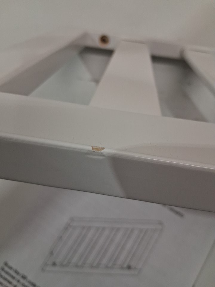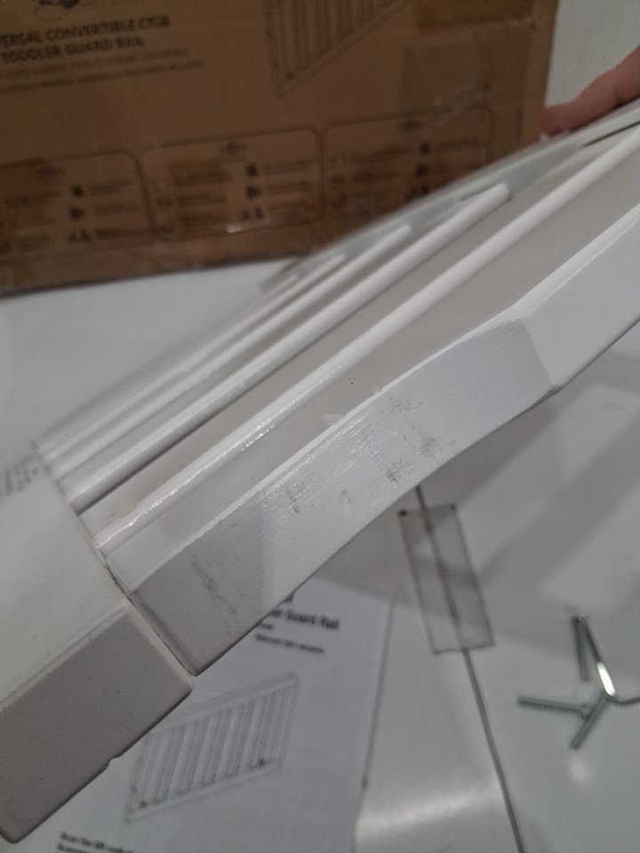 There are some scuff marks/chips in the paint indicating previous handling, but the rail otherwise appears new (see photos)