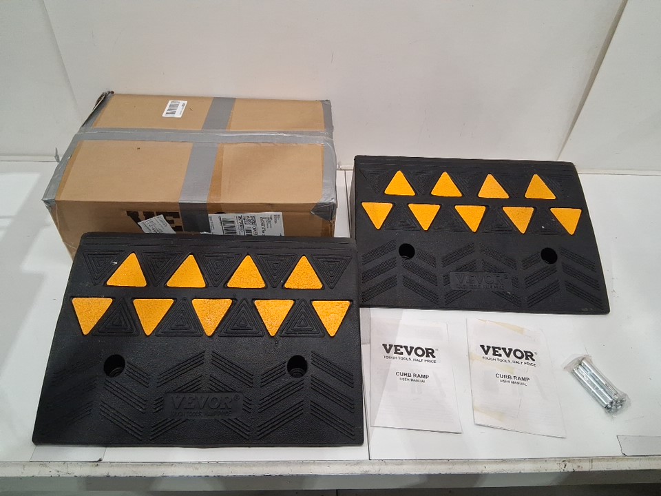 2pk rubber curb ramp - 13" x 19" x 5" - black/yellow (model: kr-07)