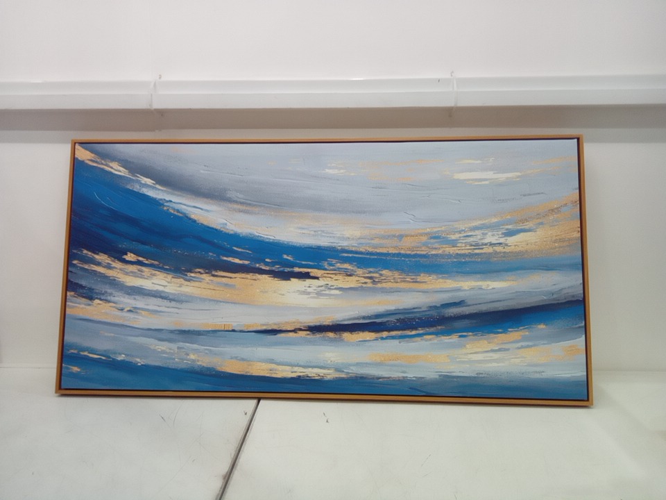 Framed Blue Abstract Wall Art - 30”x 60” - blue\gold
