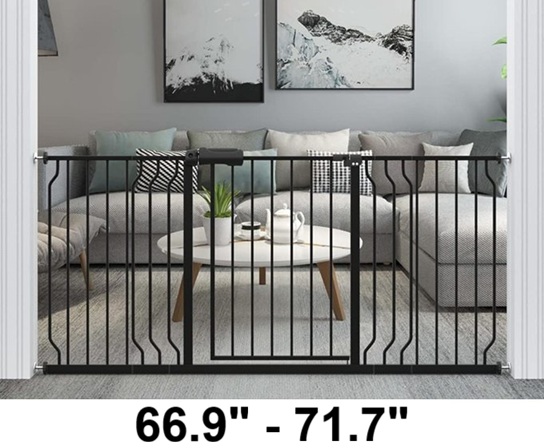 WAOWAO EXTRA WIDE PRESSURE MOUNT WALK THROUGH, SWING AUTO CLOSE SAFETY BABY GATE - 66.9'' - 71.7'' - BLACK (MODEL: W046)