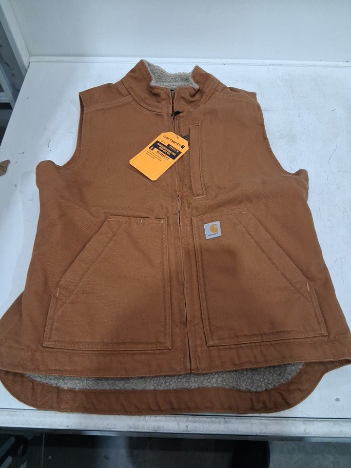 women's carhartt relaxed fit washed duck sherpa-lined mock-neck vest - extra small - carhartt brown (model: ov4277-w)