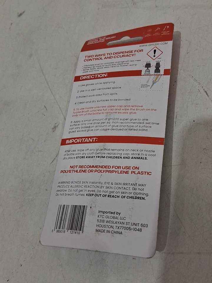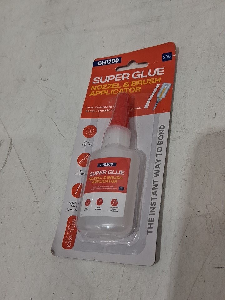 GH1200 2-in-1 All Purpose Super Glue with Brush Applicator & Nozzle - Mess Free Brush, Never Dries, 3000 CPS, 20g