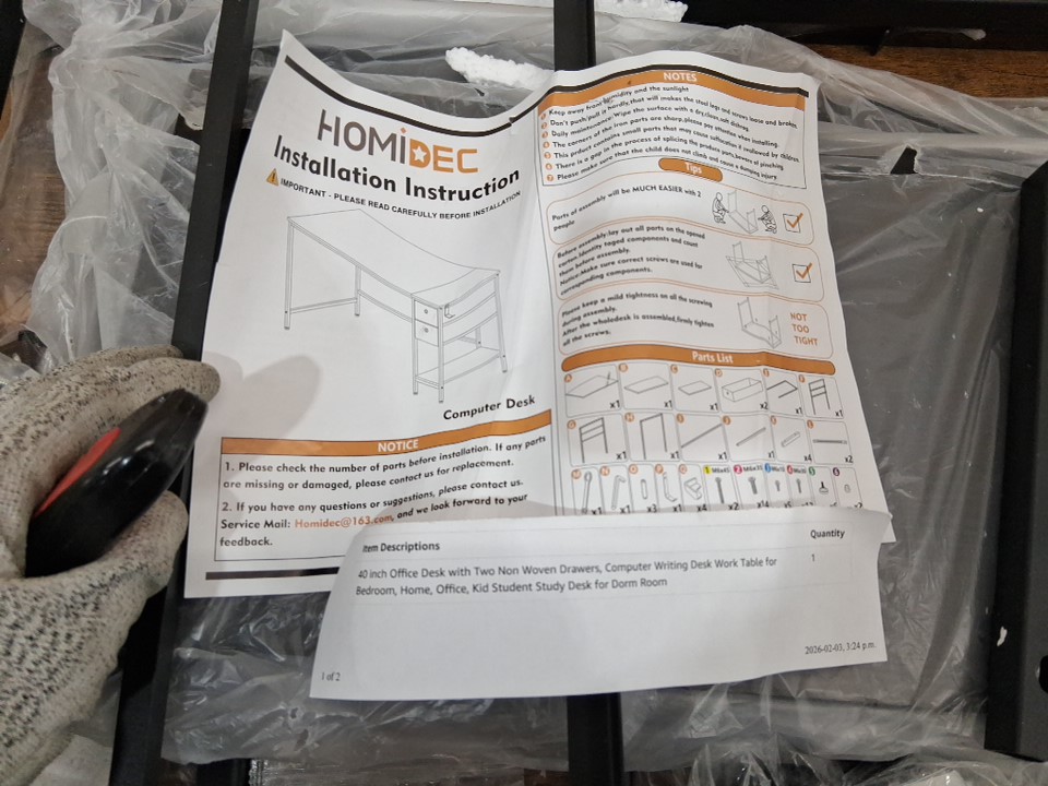Homidec Metal Office Desk With non-woven drawers - 40" - Black/Brown