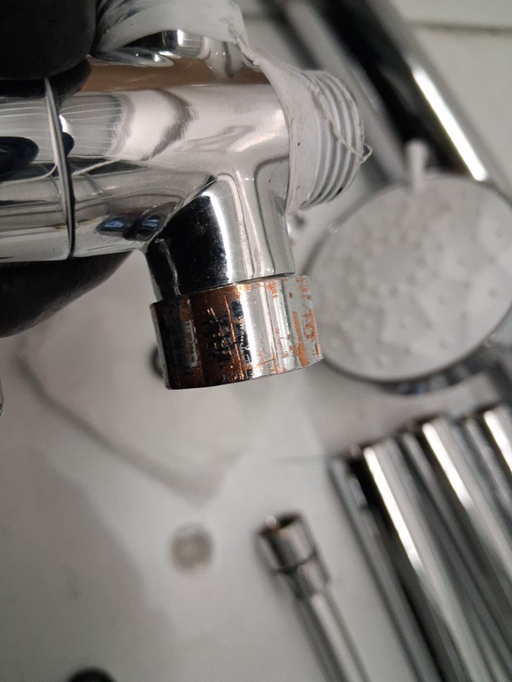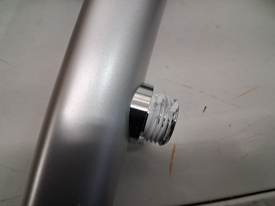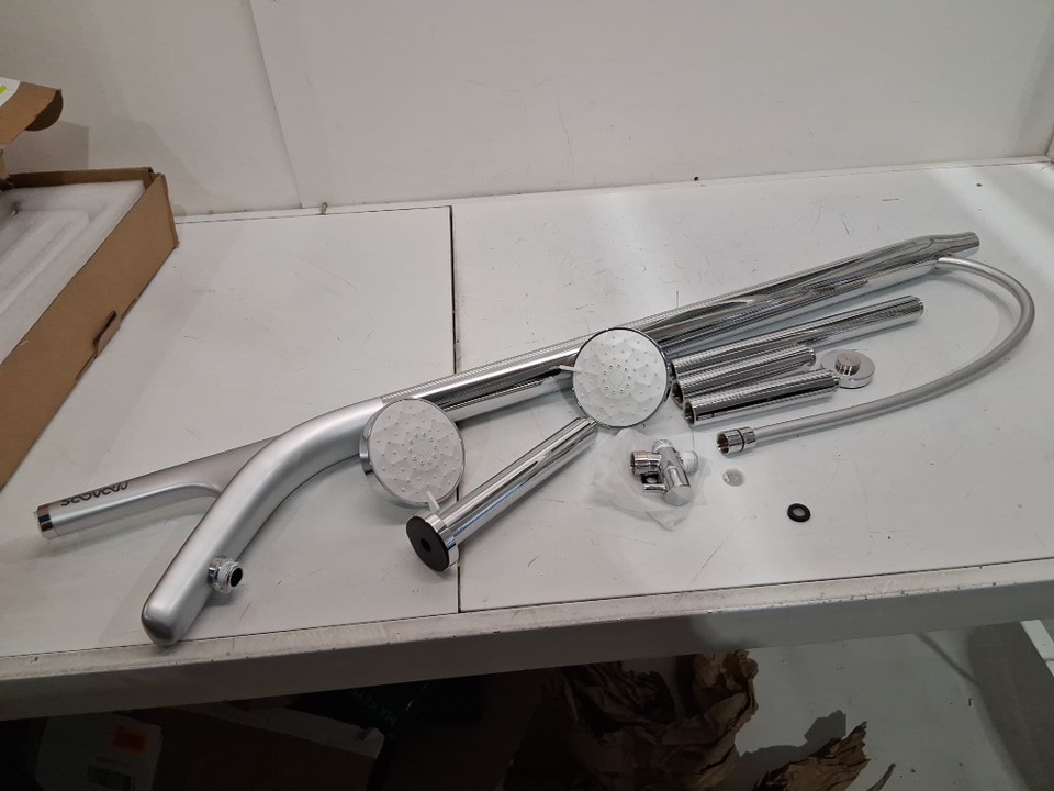 Attachment for the split shower head has teflon tape/scuffs/scratches from prior attempted installation- Showerheads appear new/unused.