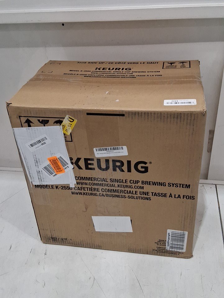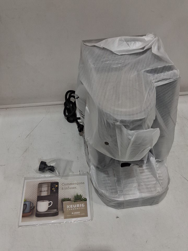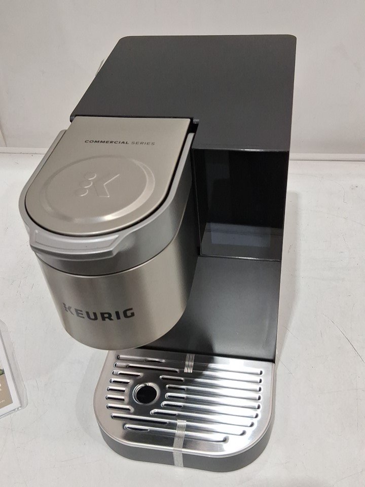 **Tested for power.** Item has minor coffee grounds debris in the k-cup holder, residual water in the descaling tray and tubing, a few minor markings on the exterior from previous gentle use, see photos.