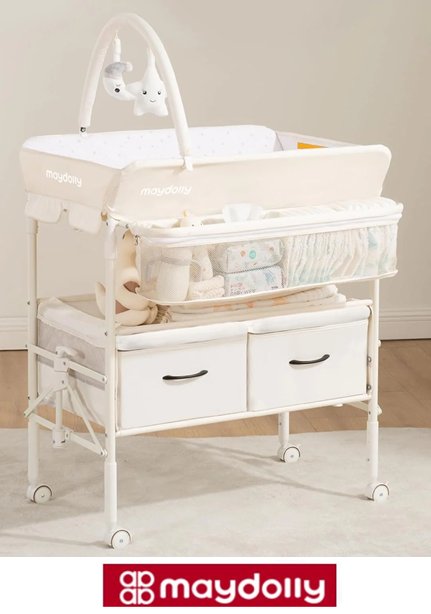 Maydolly Folding and Waterproof Diaper Changing Table care Station with Wheels - Height Adjustable - beige (model: 248)