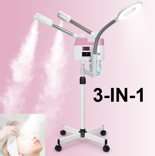 FLOLXNB Professional 3 in 1 Facial Steamer with Hot/Cold Nozzle - pink/white (model: A368P+709)