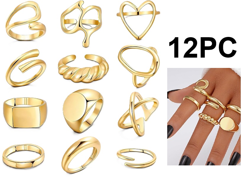 12PC Rings Set 8K Gold Plated Open Stacking Knuckle Ring - assorted sizes - 7 - 8 - gold