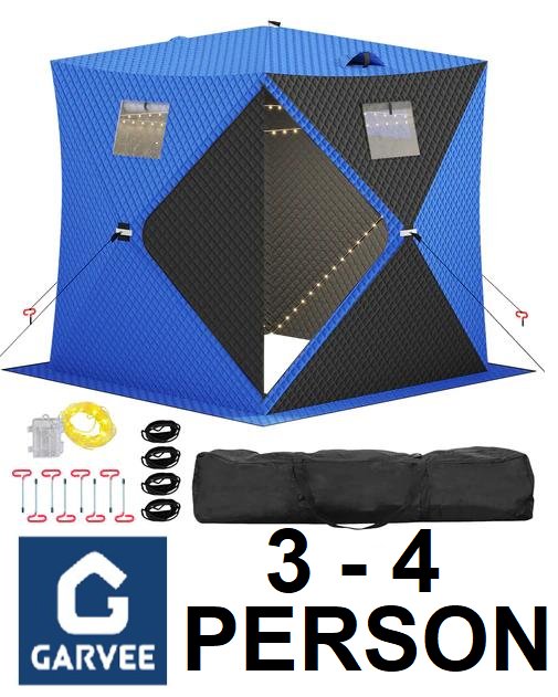 Garvee Insulated Pop-Up Ice Fishing Tent with LEDs - 3-4 Person Shelter - blue/black