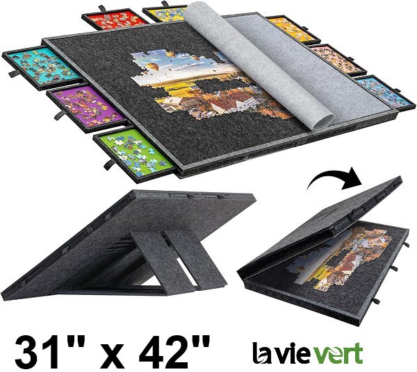 la vie vert Foldable & Tilting Jigsaw Puzzle Board with Built-in Stands and drawers - 31" x 42" - grey - (Model: wgptb057)
