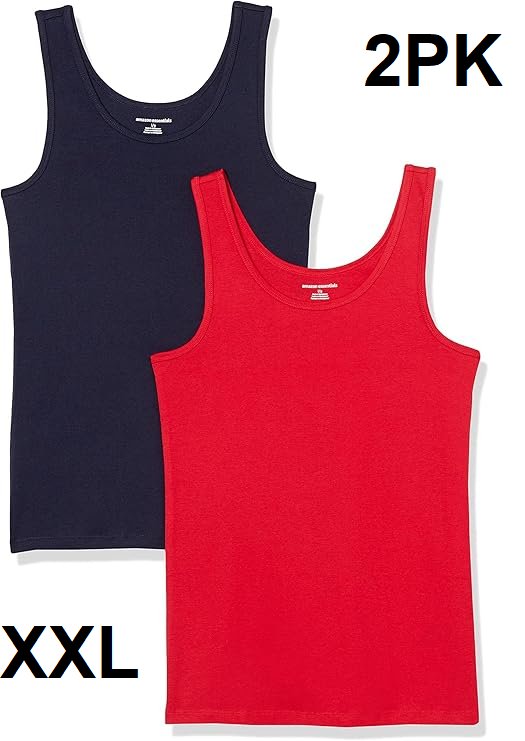 2PK WOMENS AMAZON ESSENTIALS SLIM FIT TANK TOP - XXL - NAVY/RED