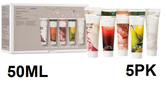 5pk korres greek body care rituals body butter - 50ml each- GRECIAN GARDENIA/UNSCENTED/BERGAMOT PEAR/GRAPEFRUIT SUNRISE/AURORE PAMPLEMOUSSE