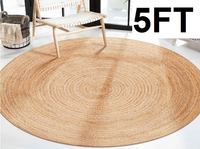 round boho indoor braided reversable jute area rug- 5ft round - beige