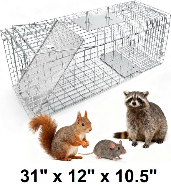 sketchtastic set and release humane live animal trap for medium/small animals - extra Large - 31" x 12" x 10.5" - Silver