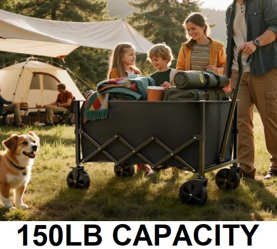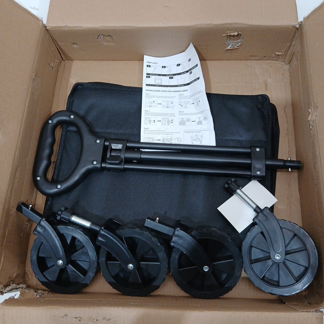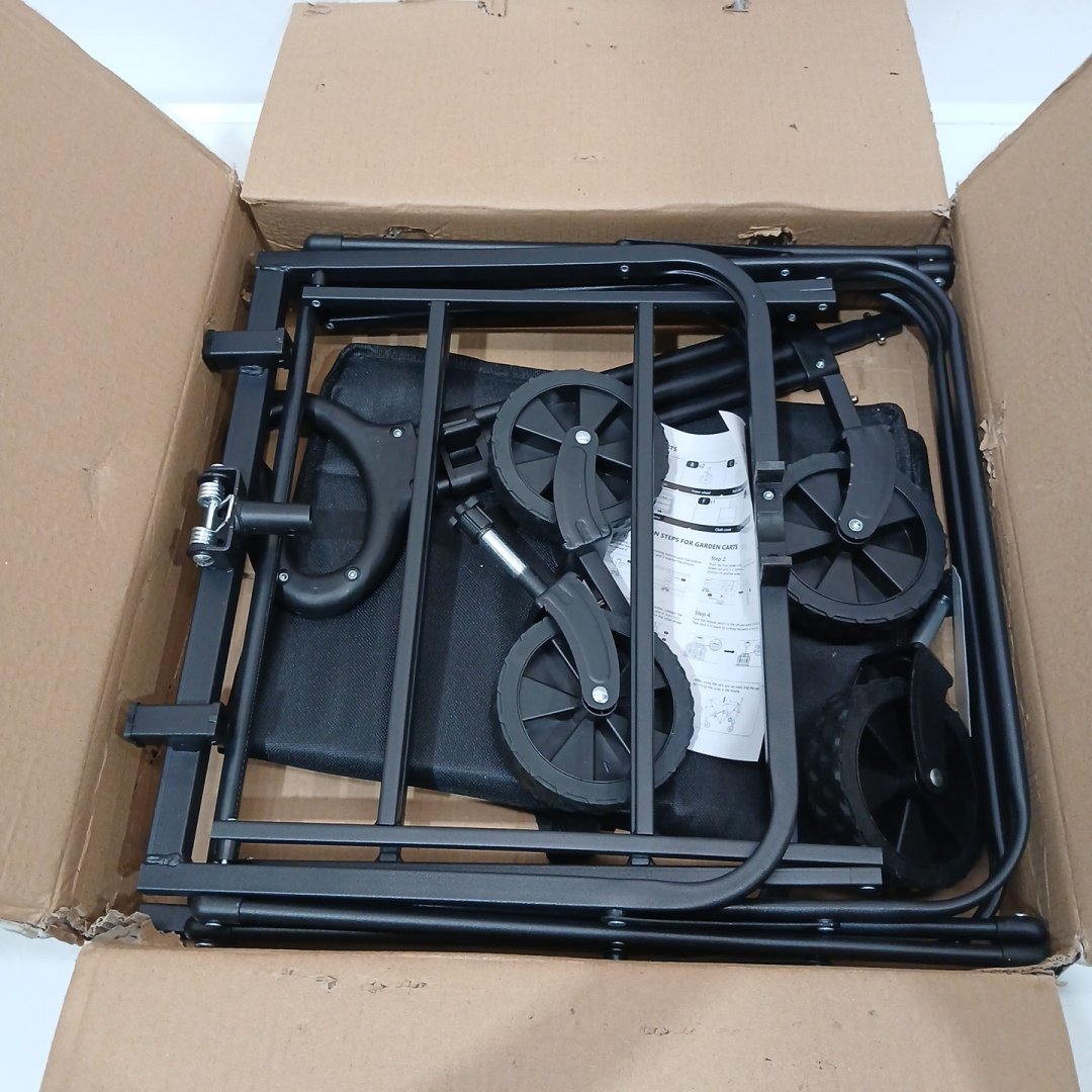 LEWANJA FOLDING GARDEN & UTILITY CART, PORTABLE SHOPPING WAGON - 150LB CAPACITY - BLACK