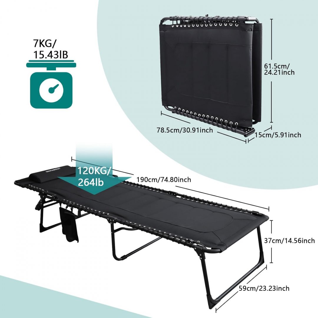 WKFAMOUT Outdoor Folding Padded Lounge Chair - Adjustable Reclining - 264 CAP - BLACK (MODEL: KB2401)