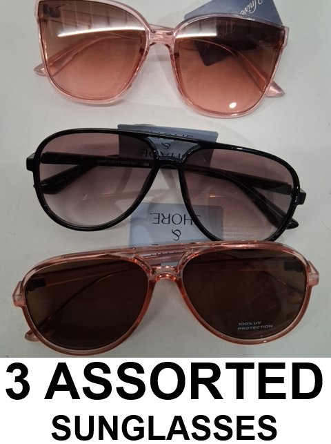 3 ASSORTED sunglasses - assorted colors and brands