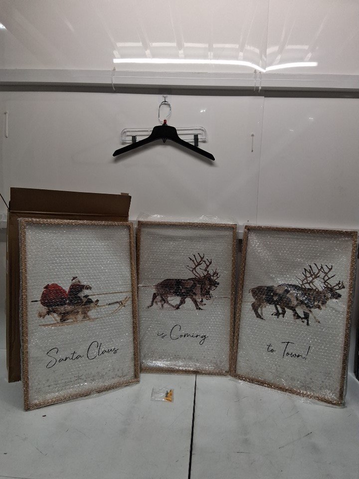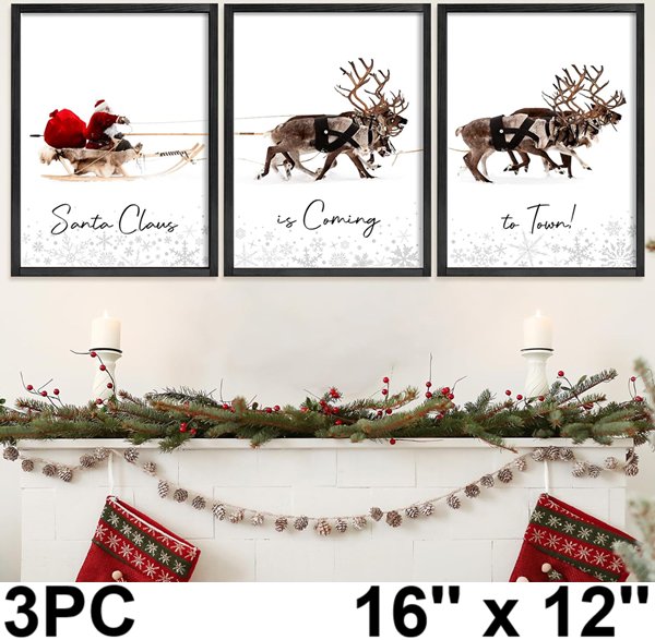 3pc litivy framed plexiglass christmas wall art - 16'' x 12'' - black/brown/red
