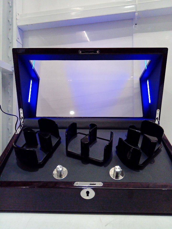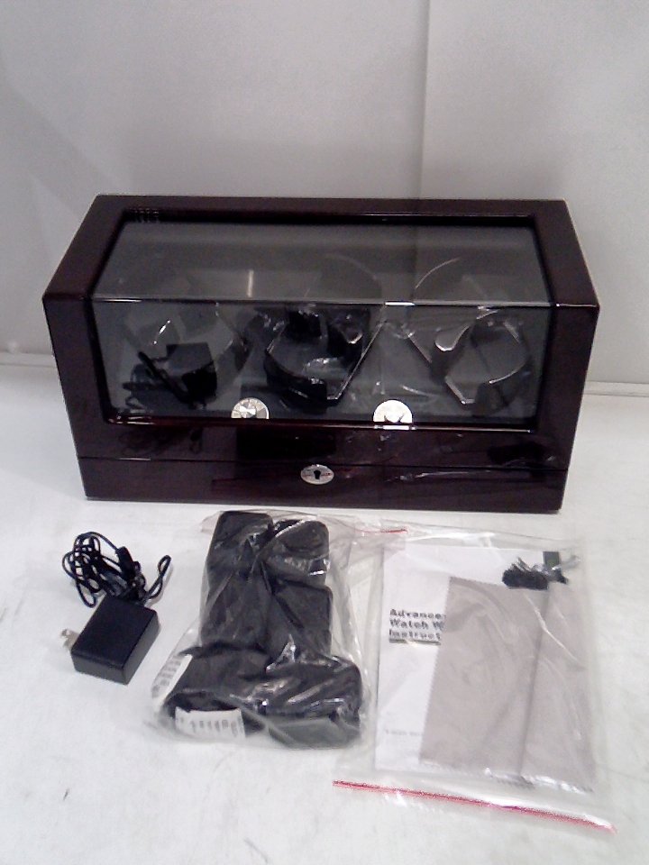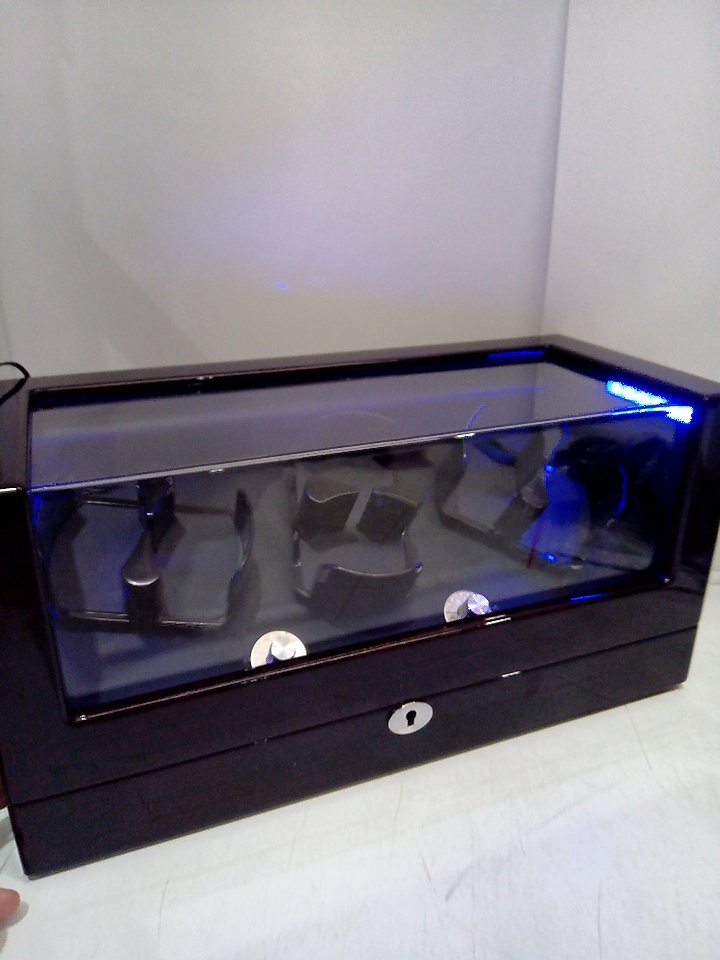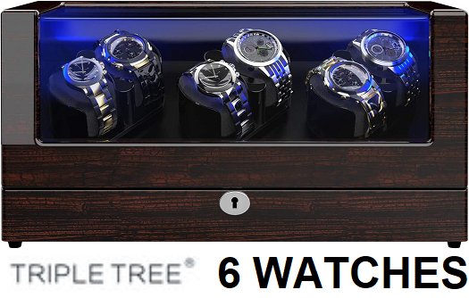 TRIPLE TREE Watch Winder, Automatic Watch Winder with Soft Flexible Watch Pillows, Wooden Shell, Powered by Japanese Motor Built-in Blue LED Illuminated - 6 WATCHES - 16.3" X 7.1" X 7.9" - DARK BROWN - (MODEL:gj-32001)