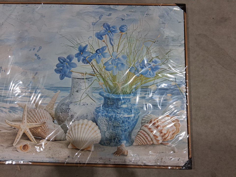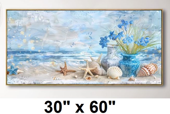 YOUKUART MODERN ABSTRACT FRLRAL FRAMED WALL CANVAS - beach seashells 30" X 60"