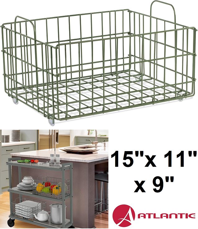 ATLANTIC collapsible wire storage basket with removable bottom - 15" x 11" x 9" - green (model: 23308042)