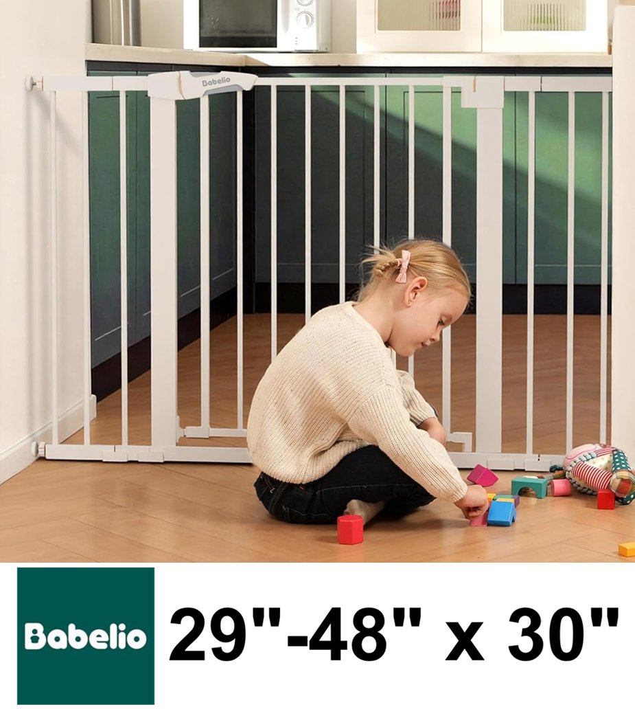 Babelio No Drilling Pressure Mounted Safety Gate With Auto Close Door - 29"-48" x 30" - White (Model: CB-M-101)