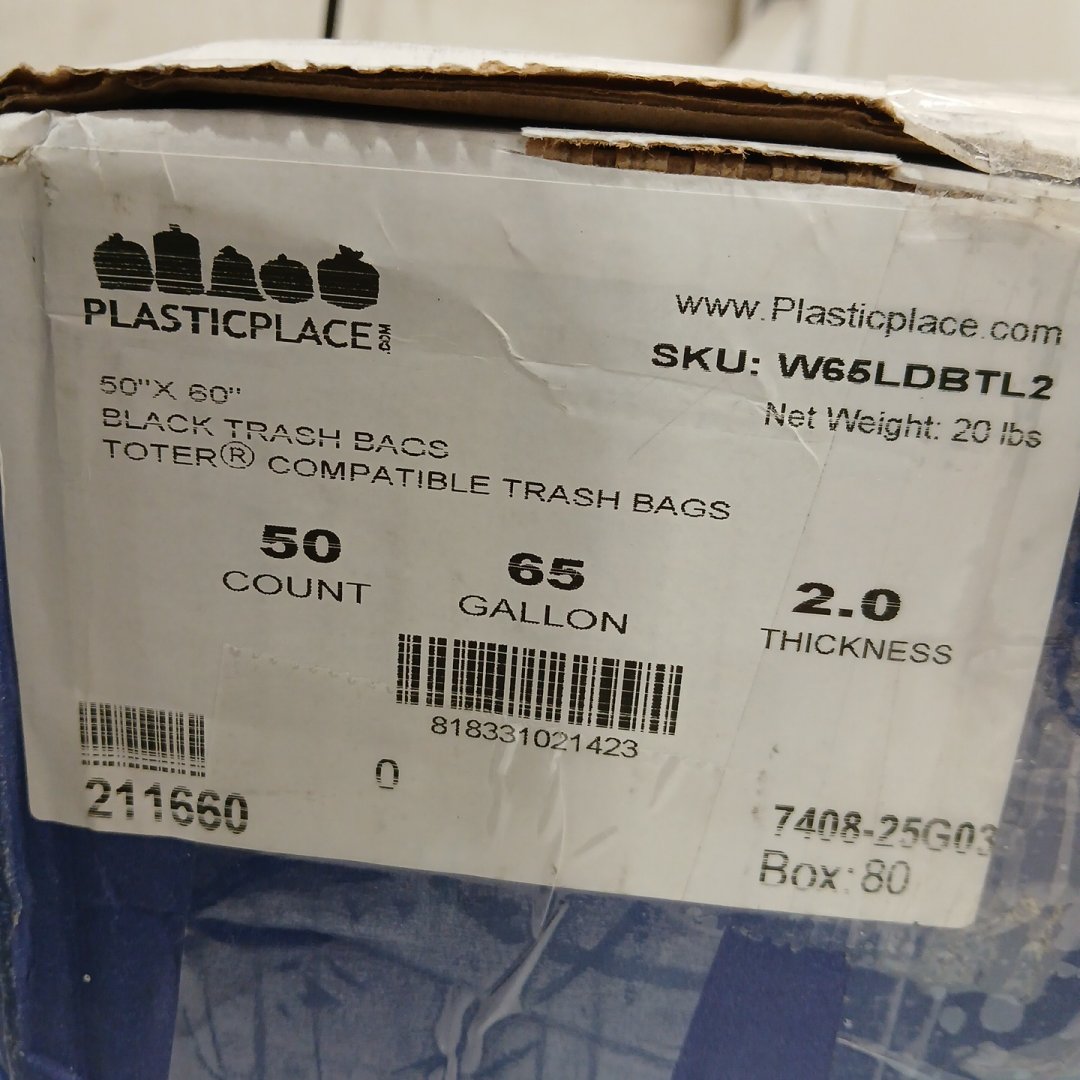 50PK Plasticplace Heavy Duty 2.0 MIL Garbage Can Liner Trash Bags - 65GAL - Black (Model: ‎W65LDBTL2)