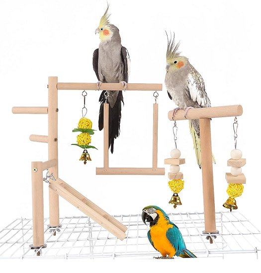 Natural Wood multi function Bird Play Stand & Perch - brown