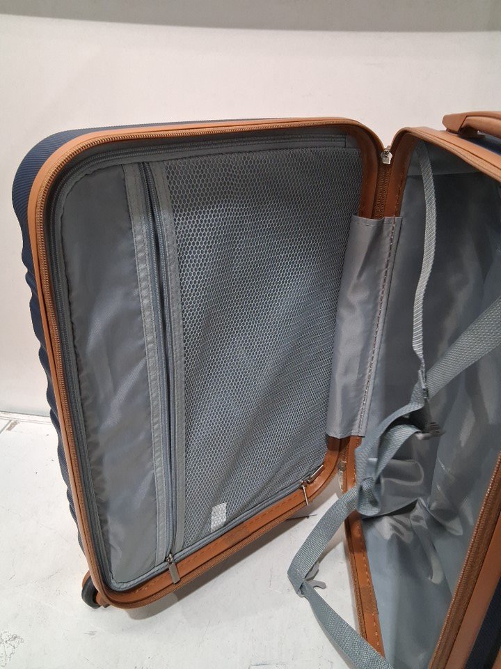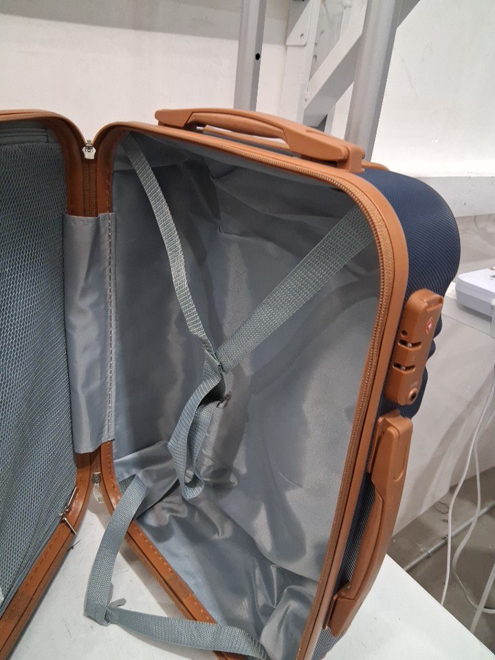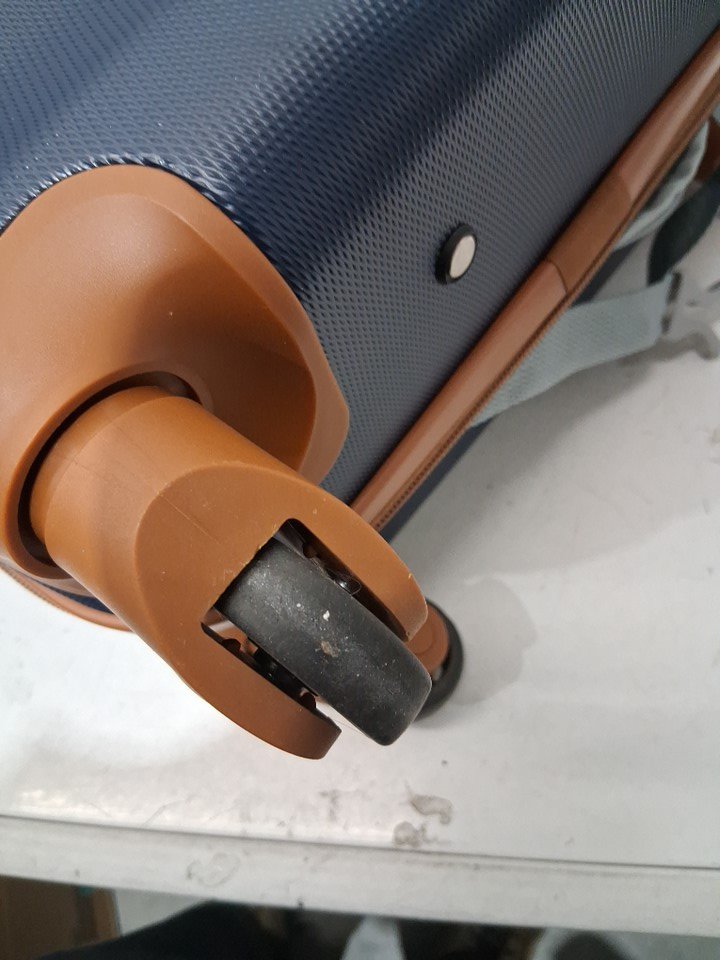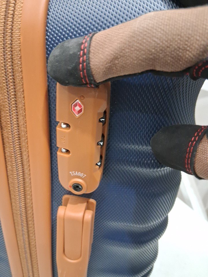 Scuffs and marks on the wheel would suggest light use. TSA LOCK passcode is set at "4 2 1"