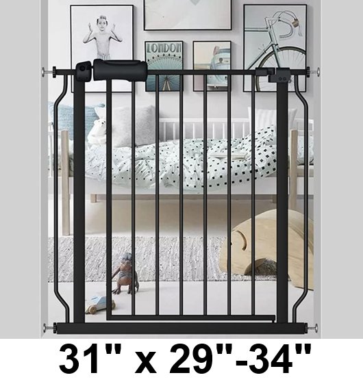 fairy baby mounted walk through baby/pet gate - 31" x 29"-34" - black (model: w046)