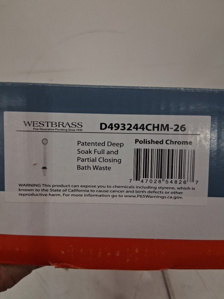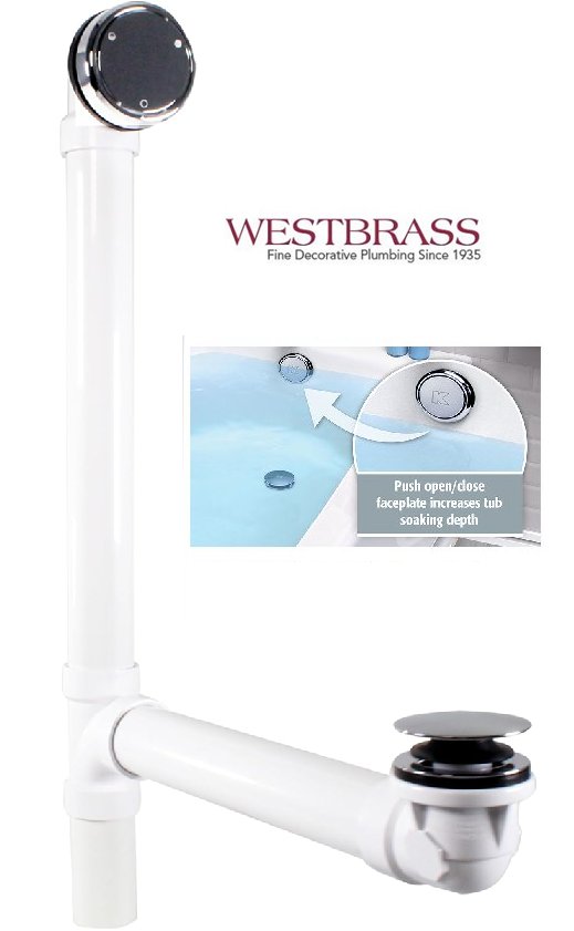 Westbrass Universal Deep Soak PVC Bath Drain - polished chrome (model: d493244chm-26)