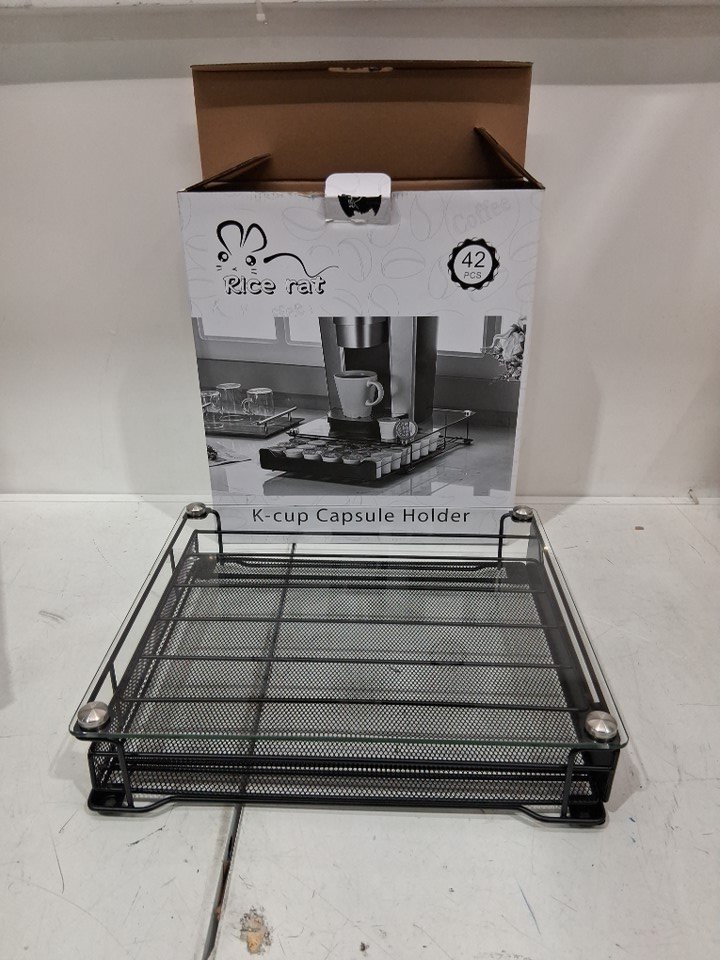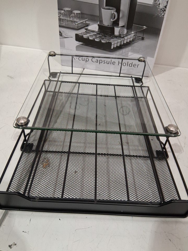 Rice rat Glass Top Drawer K-Cup Storage Coffee Capsules Pod Holder, holds 42 pods - 14.57" x 12.79" x 3.54" black - (model: cd9323d-n)