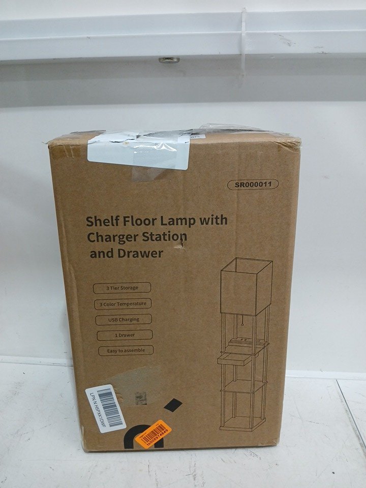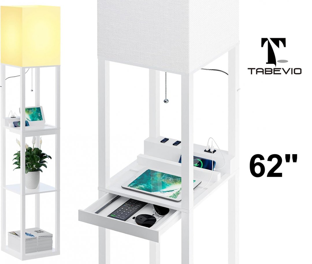 TABEVIOP Modern Shelf Floor Lamp with 1 Drawer and 2 USB Ports,2 Power Outlet - 62" - WHITE (MODEL:SR000011)