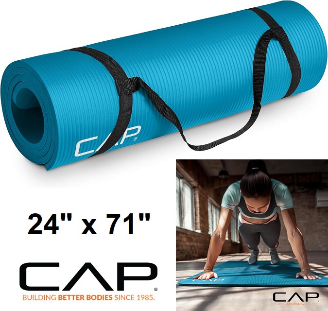 CAP Barbell High Density Exercise Yoga Mat with Strap - 1/2" x 24"x 71" - teal (model: mtis-6523-12tl)