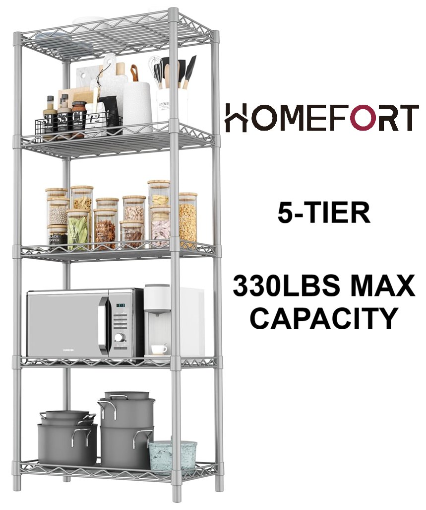 HOMEFORT 5-TIER WIRE SHELVING UNIT STORAGE RACK - GREY (MODEL: HB-C05H)