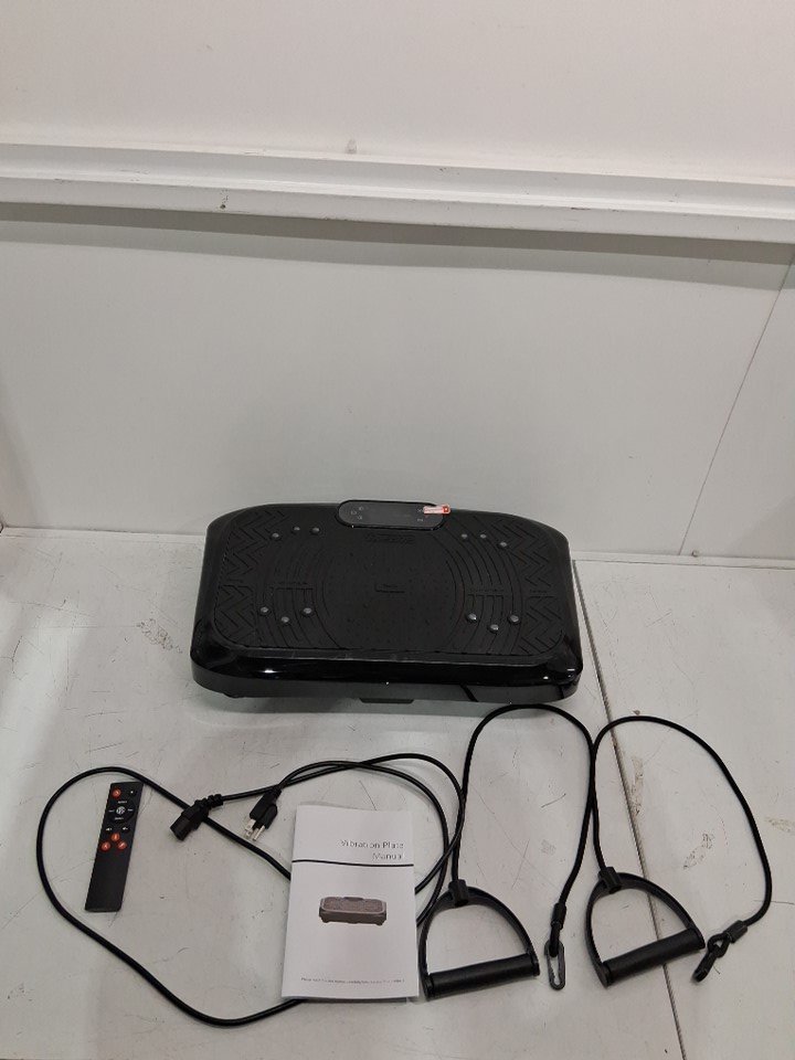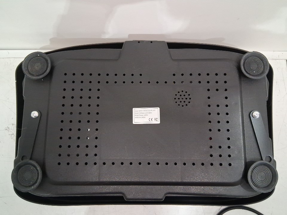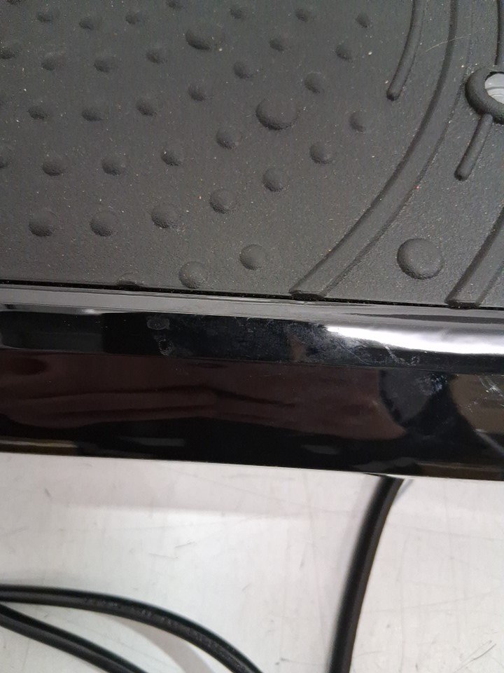 There are some smudge marks on the edges of the vibration plate due to previous use and there was some pet hair on the bottom of the vibration plate. The vibration plate and remote were tested for power and function.
