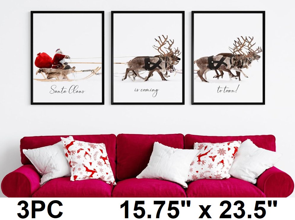 3pc litivy poster print christmas wall-art - 15.75"x23.5" - "santa claus is coming to town"
