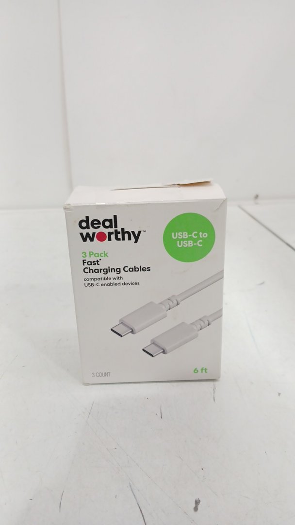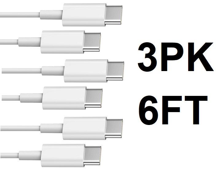 3PK dealworthy FAST CHARGING USB-C TO USB-C CABLES - 6FT - WHITE