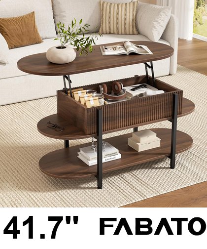 FABATO 3-TIER Oval Lift Top Coffee Table with Hidden Storage - 41.7'' - WALNUT - (MODEL: CT019-WA)