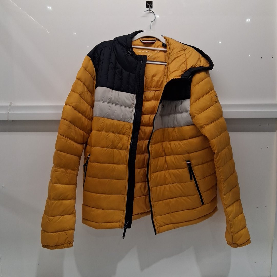 Men's Tommy Hilfiger Water Resistant Ultra Loft Puffer Jacket with hood - large - yellow/white/blue -